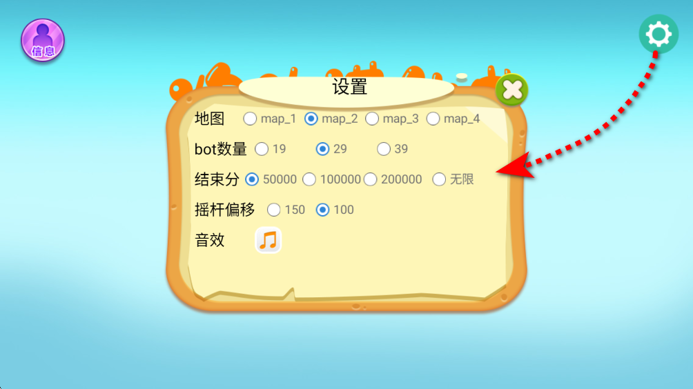 1.进入游戏后点击右上角的设置可以更改游戏模式等等。