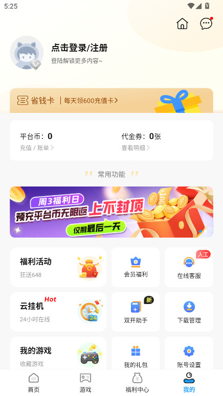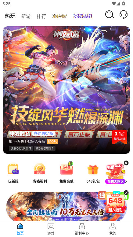 3、进入到软件首页,如图所示;这里能为用户提供众多热门游戏推荐和核心功能入口;