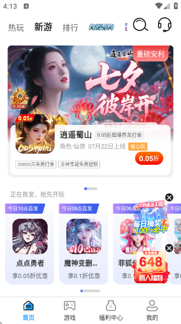 4、新游中能查看到最新上线和首发的游戏资源,