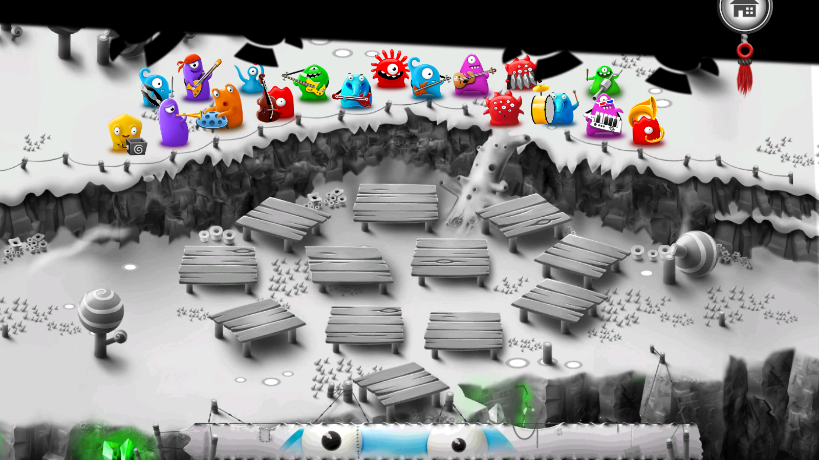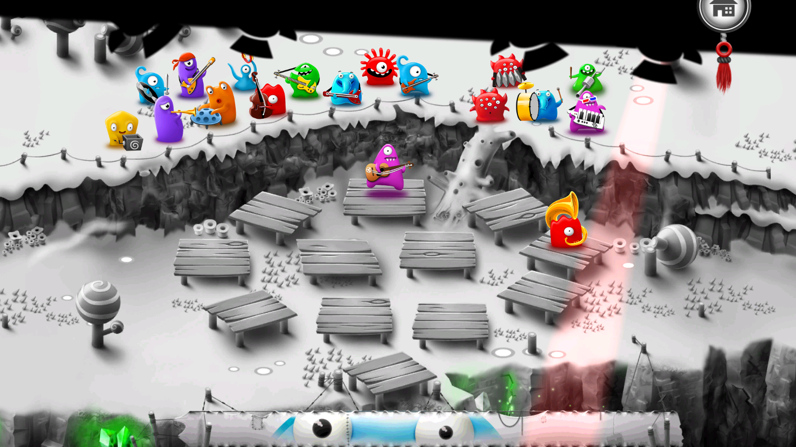 3、随音乐进行不断调整果冻怪物位置、利用功能按钮控制演奏进程、完成一场精彩的音乐表演。
