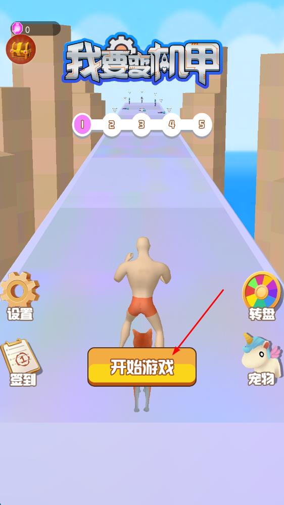 1、点击“开始游戏”,进入关卡选择,当前为关卡1,操控角色与宠物踏上跑道,准备收集道具。