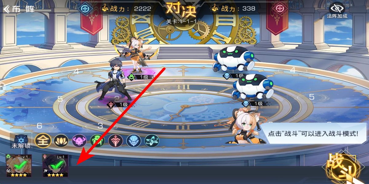2、新手进入布阵对决界面,点击下方探员头像,拖动至战场空位,依据探员特性差异,精心编排阵容,为战斗搭建基础配置。