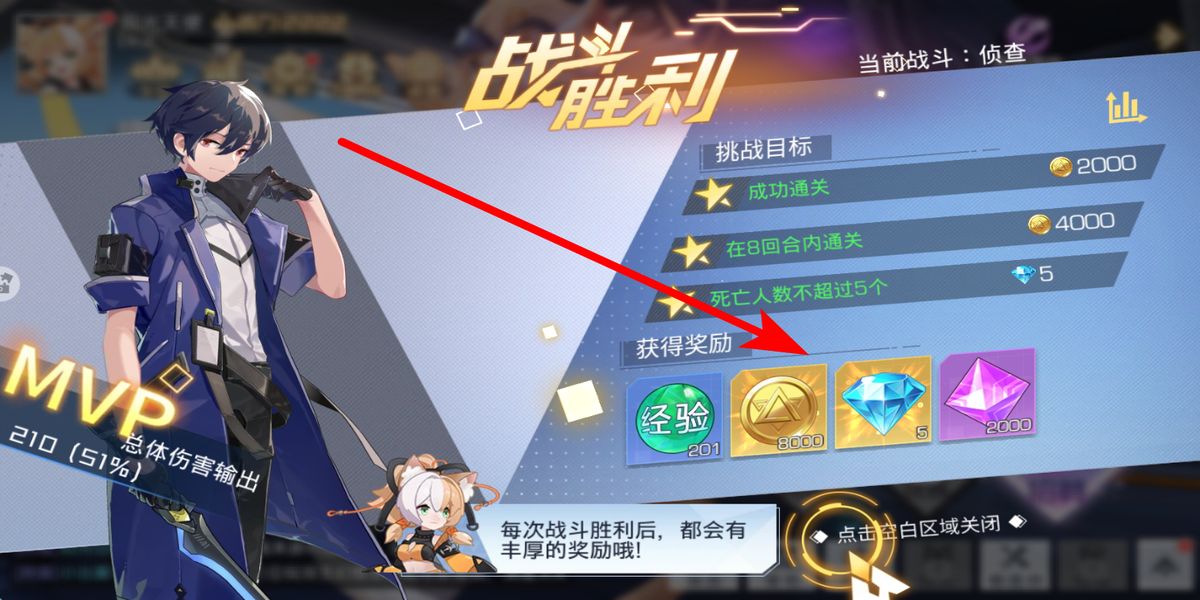 3、点击战斗按钮进入战斗,成功战胜敌人后,界面会清晰显示获得经验、金币、钻石等奖励,可用于后续养成,稳步提升实力。