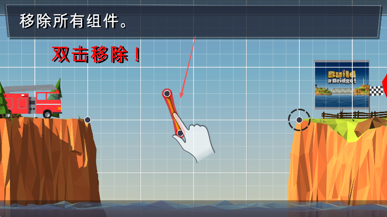 1、进入游戏看清上方提示移除所有组件,双击移除、按要求操作清理界面为建桥做准备。