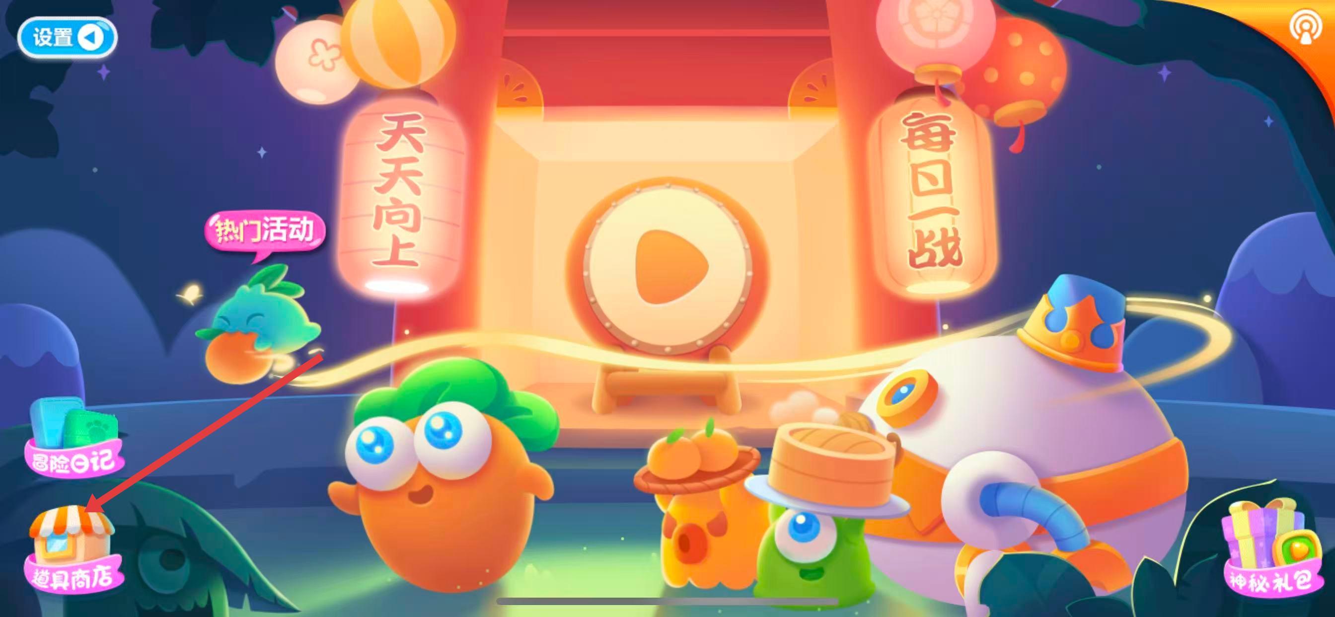 1、进入保卫萝卜2游戏主界面,点击屏幕左侧的道具商店按钮。