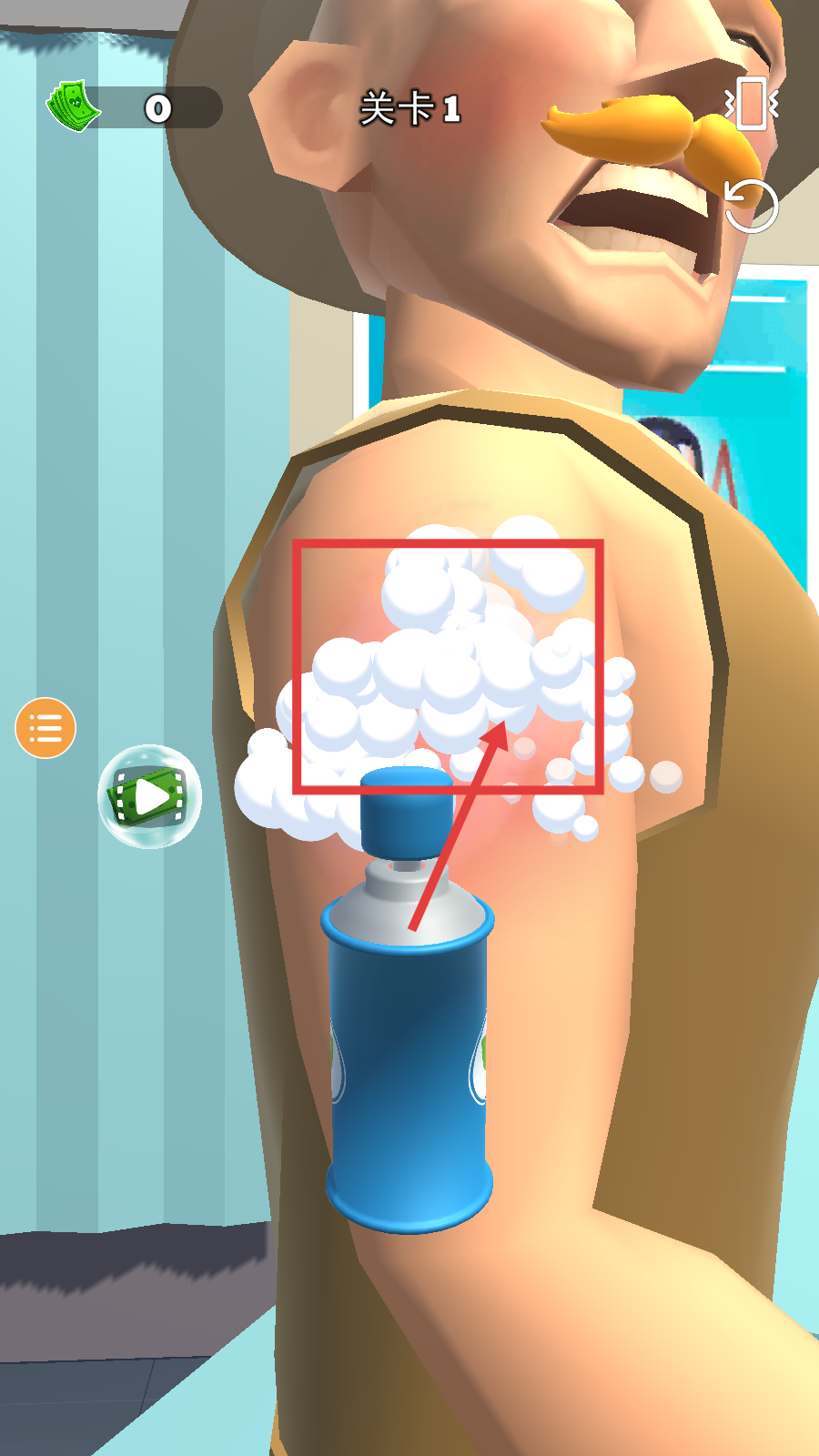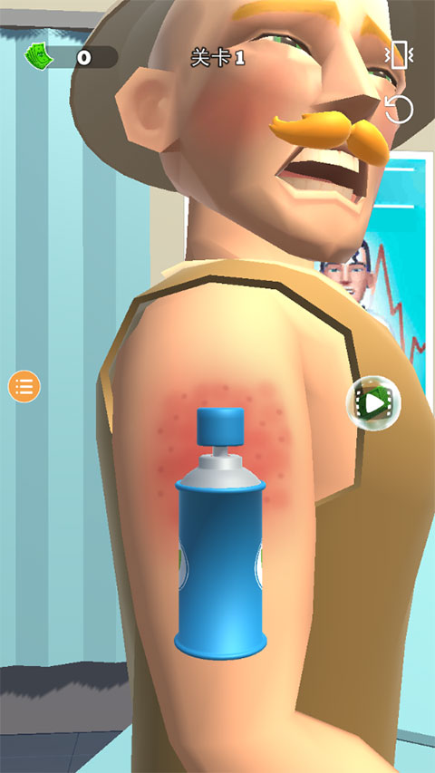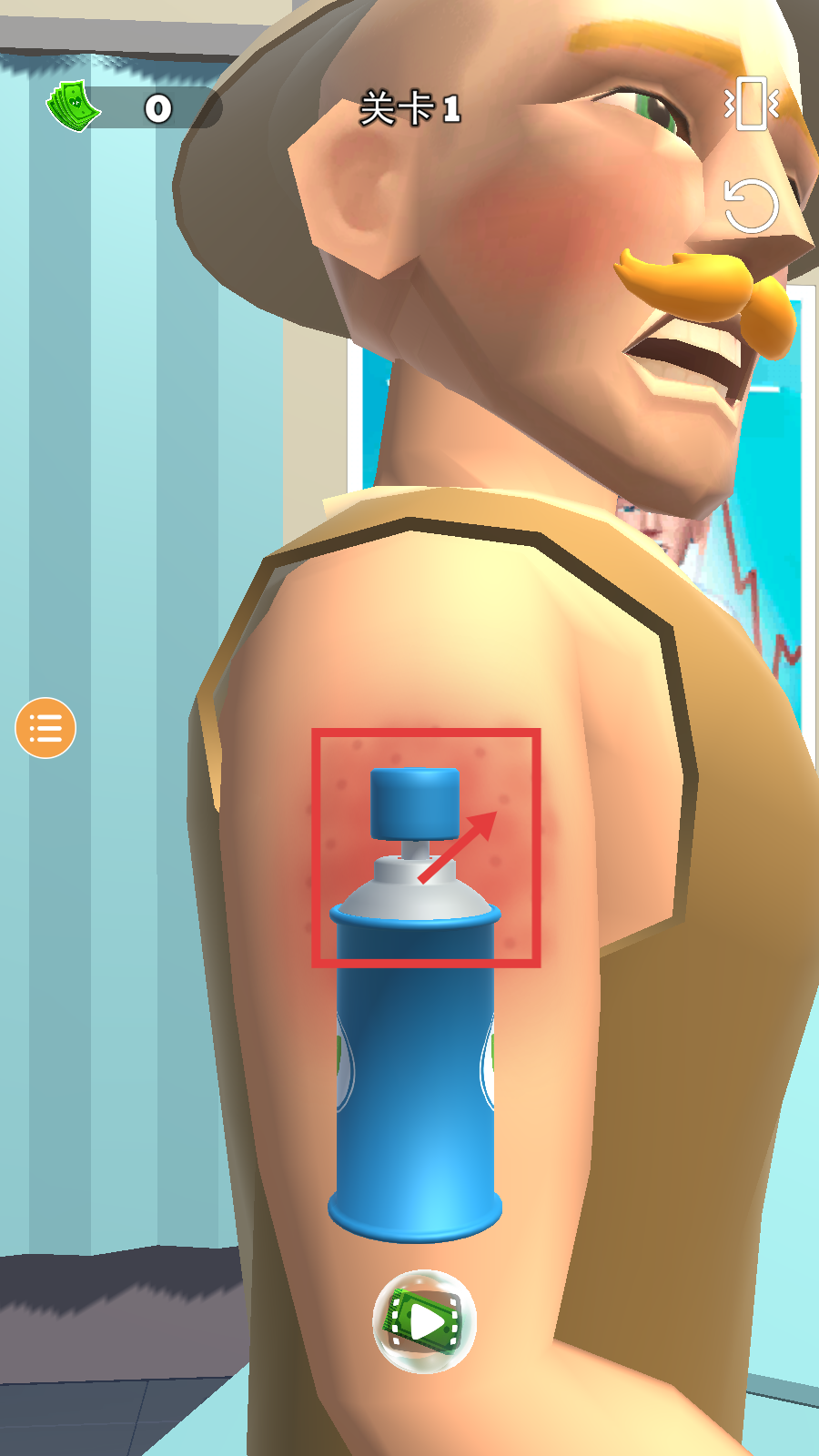 2、点击蓝色喷雾罐对准患处喷洒-为清洁步骤做铺垫。