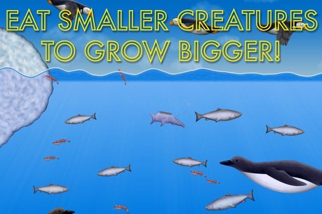3、玩家必须帮助小金鱼生存,所以你必须控制你的小金鱼吞噬和吃掉较弱的海洋生物来进化和成长。
