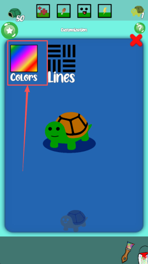 3、定制外观:在“Customization”中选择“Colors”或“Lines”定制龟龟外观。