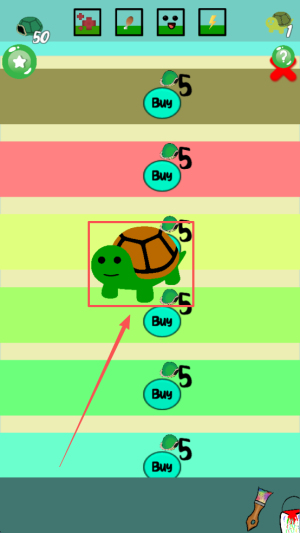 4、购买食物:在商店界面点击“Buy”按钮购买食物喂养龟龟。
