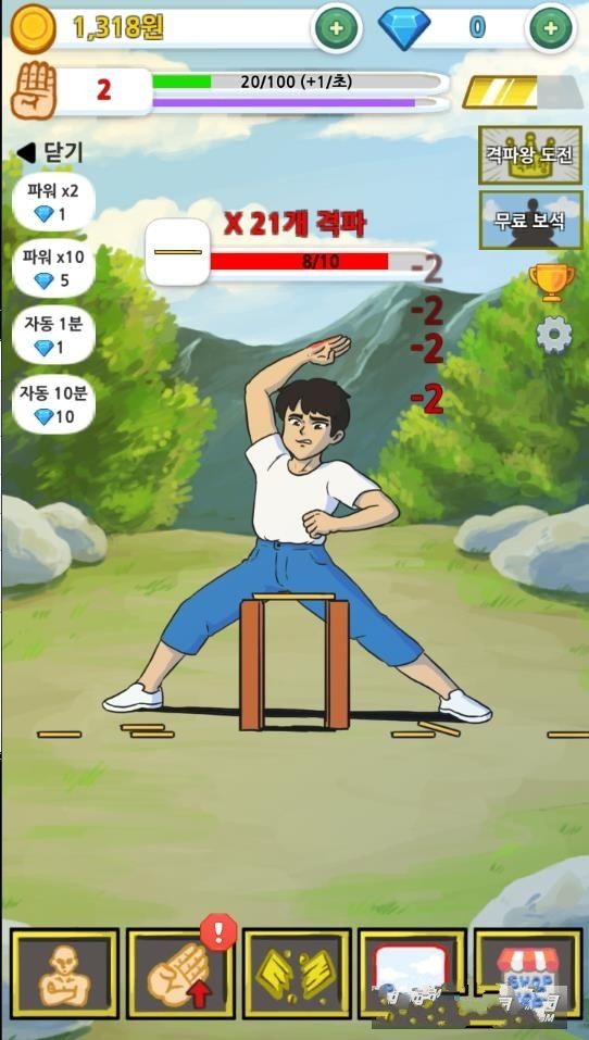 1、魔性画面体验:采用卡通动漫风格设计,画面色彩鲜艳且趣味十足,直观展现劈砖过程,吸引用户注意力并带来欢乐体验。