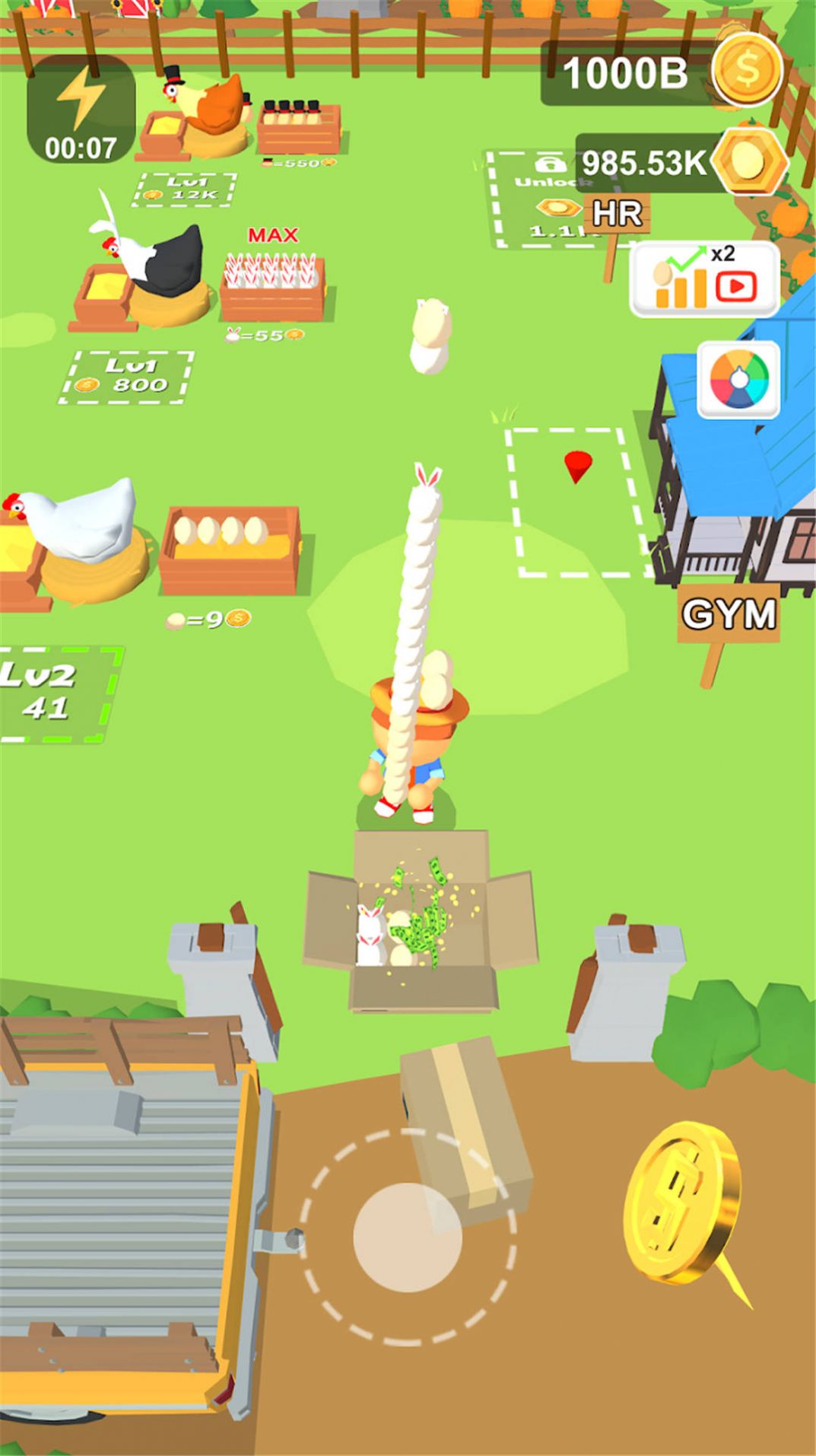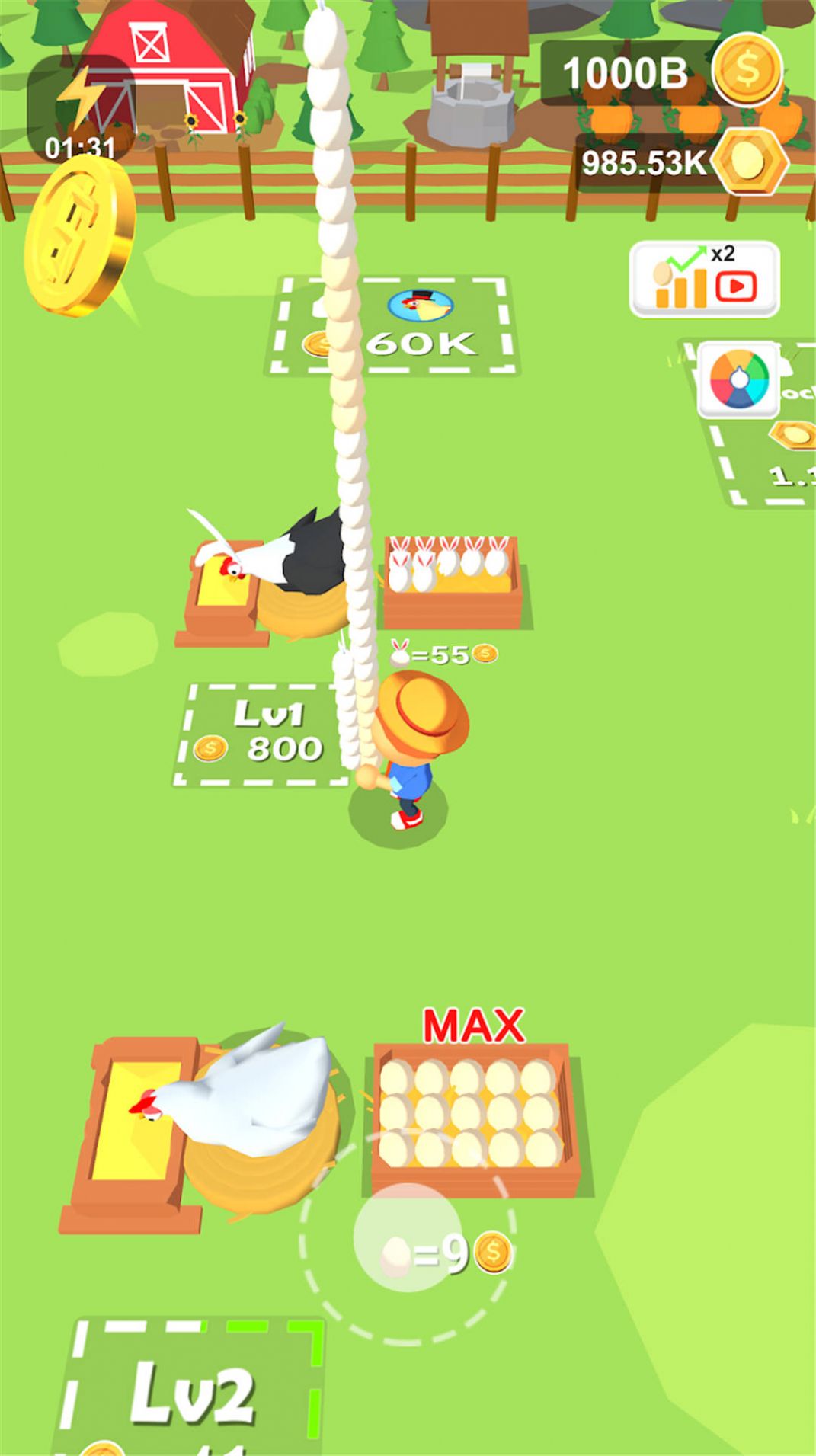 这款游戏的操作还是很简单,去将更多鸡蛋给卖掉,这样就可以获得收入了。