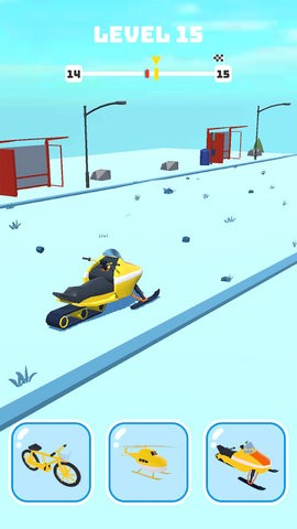 竞速变变变作为一款由北京赛诺斯科技发展有限责任公司开发的休闲闯关类手游,手游采用简单的3D模型设计,在游戏里玩家需要驾驶各种交通工具在游戏里面和其他的小人展开速度对决,第一个抵达终点,即可获得比赛胜利。欢迎下载尝试。