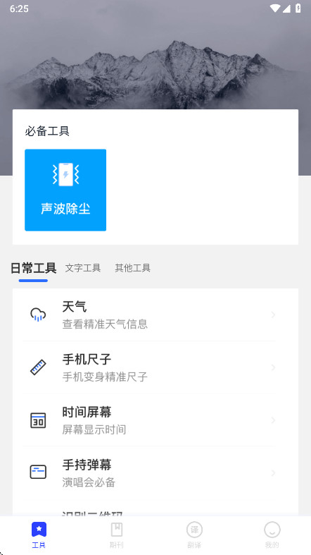 纺余工具盒app就是你的终极解决方案!这是一款功能强大且全面集成的工具箱应用,将你日常所需的海量工具全部收纳其中。一个APP,搞定所有,让你的手机桌面从此清爽无比,效率加倍!从实用的声波除尘、手持弹幕等日常工具,到专业的文字工具,再到黑科技般的拍照翻译和语言翻译,我们为你准备了各种各样的小工具,满足你的不同需求。无论是工作、学习还是生活,都能轻松应对。我们将常用的工具整合在一个应用中,让你无需来回切换,大大节省了你的时间和精力。