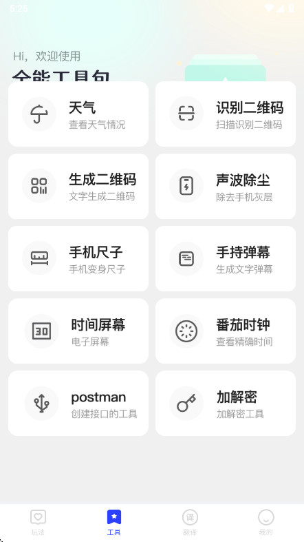 秋枫万能口袋app就是你的手机百宝箱, 从实用的识别、生成二维码,到黑科技般的声波除尘,再到有趣的手持弹幕,我们为你准备了各种各样的小工具,满足你的不同需求。无论是工作、学习还是生活,都能轻松应对。我们采用极简主义的设计风格,界面清晰直观,没有复杂的按键和冗余功能。你只需打开APP,就能快速找到并使用你想要的工具,省时省力,让你的操作体验更加流畅。