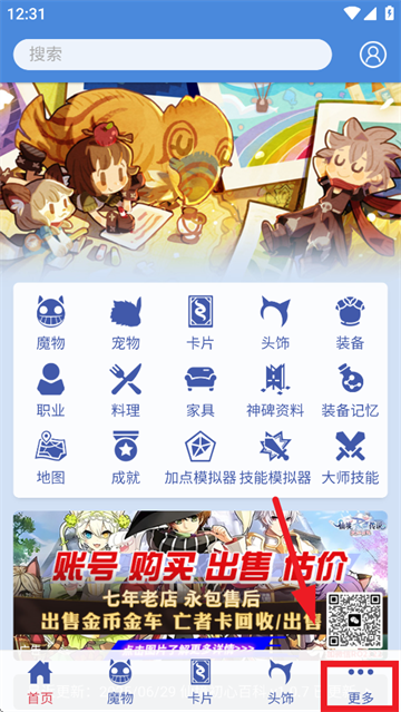 1.下载安装并打开仙境初心百科app,进入首页后点击更多