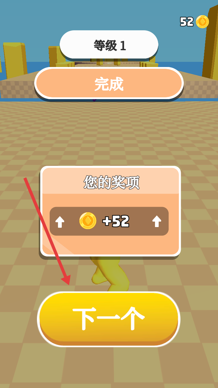 3、等级1完成后,点击下一个进入新关卡,重复追击、攻击流程,逐步解锁更强装备与技能。
