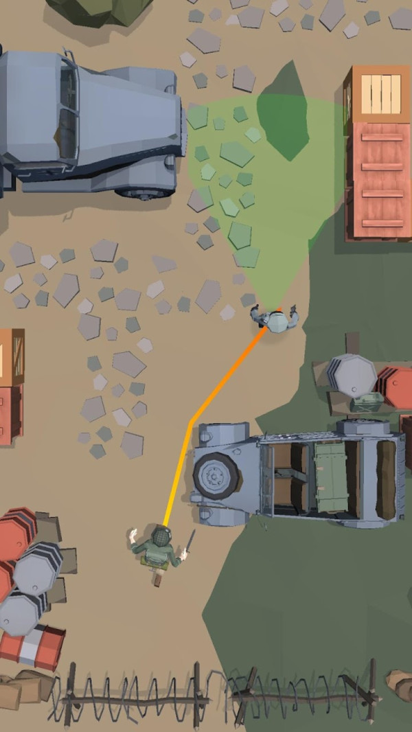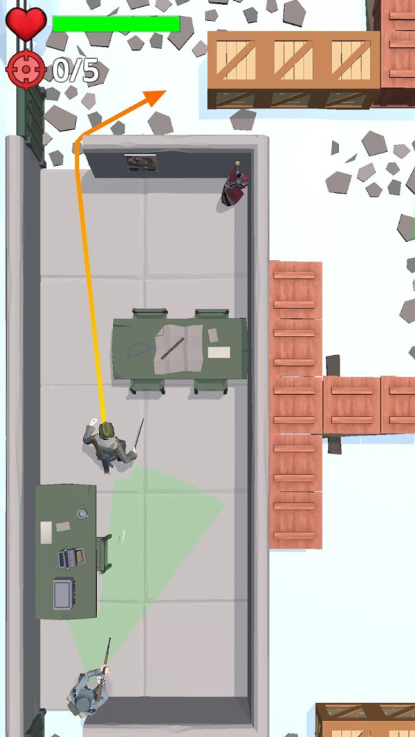 2、关卡场景挑战:每个关卡拥有不同场景设计,从茂密丛林到敌军营地,场景中的障碍物与隐蔽点各不相同,玩家在暴露前找到隐藏环境,规划刺杀路线。