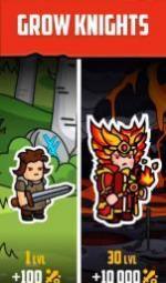 2、放置养成与英雄升级体系:玩法包含放置养成机制,即使玩家不主动操作,队伍也能在战斗中积累经验与资源;获取的资源可用于升级骑士英雄,提升其攻击力。