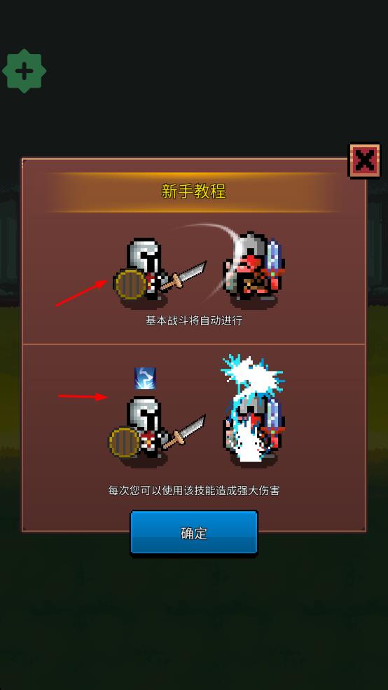 1、跟随新手教程,了解基本战斗自动进行,点击技能图标释放强力伤害技能。
