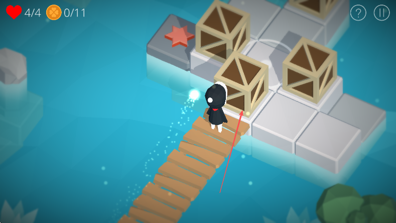 2、沿木桥前进,注意周围环境,寻找像红色五角星这样的目标物品,同时避免角色掉落。