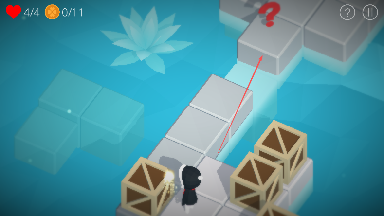 3、继续探索,遇到标有问号的方块,可进行交互,探索隐藏内容或获取提示,收集金币,保持红心数量,完成通关。