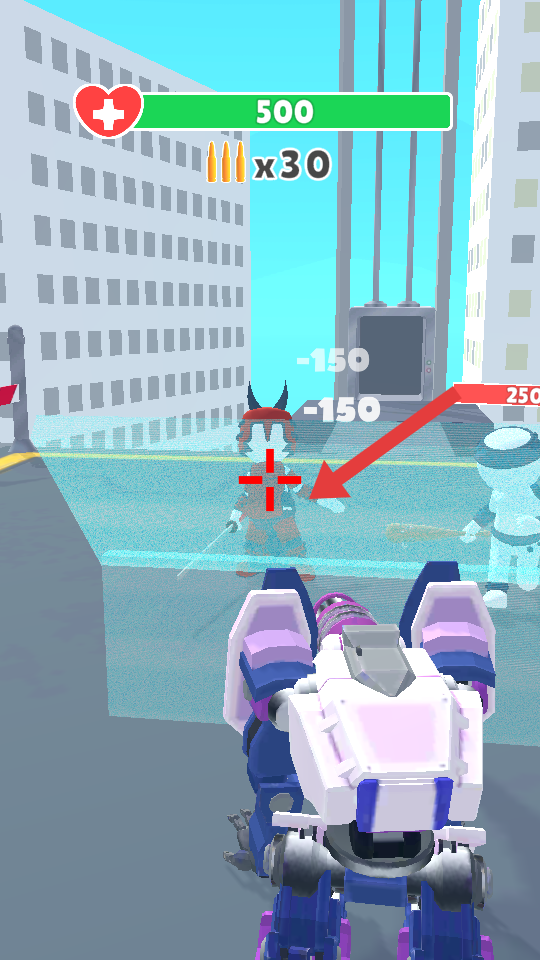 1、跑酷射击结合:机器人不仅能灵活跑酷躲避障碍,还能展开自由战斗,玩家需操控机器人在赛道上奔跑,同时瞄准敌人射击,面对战斗时,兼顾跑酷闪避与精准射击。