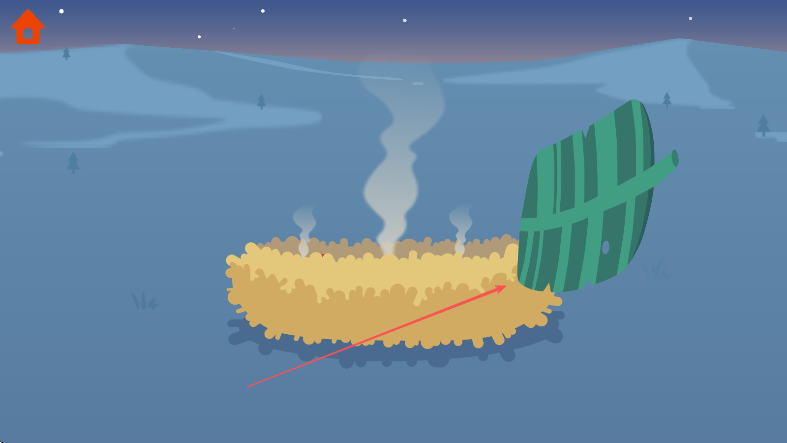 1、进入生火场景,看到干草堆和竖放的木头,通过快速点击木头来摩擦生火。