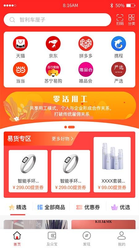 《及众》是一个一站式购物平台,汇集了淘宝、天猫、京东等各大平台的产品。用户可以在这里购买各种电商平台的产品,让用户不再需要切换购物软件来购买不同平台的产品,给用户带来了极大的方便。平台还有大量的商品折扣信息,用户可以自由查看,快速浏览到各种购物券,非常实用。