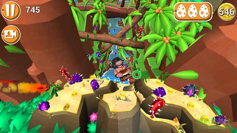 2、持续操控原始人在不同场景奔跑,比如森林、海边等地,不断前进,积累分数,还能留意特殊道具,助力跑得更远,分数也会不断攀升。
