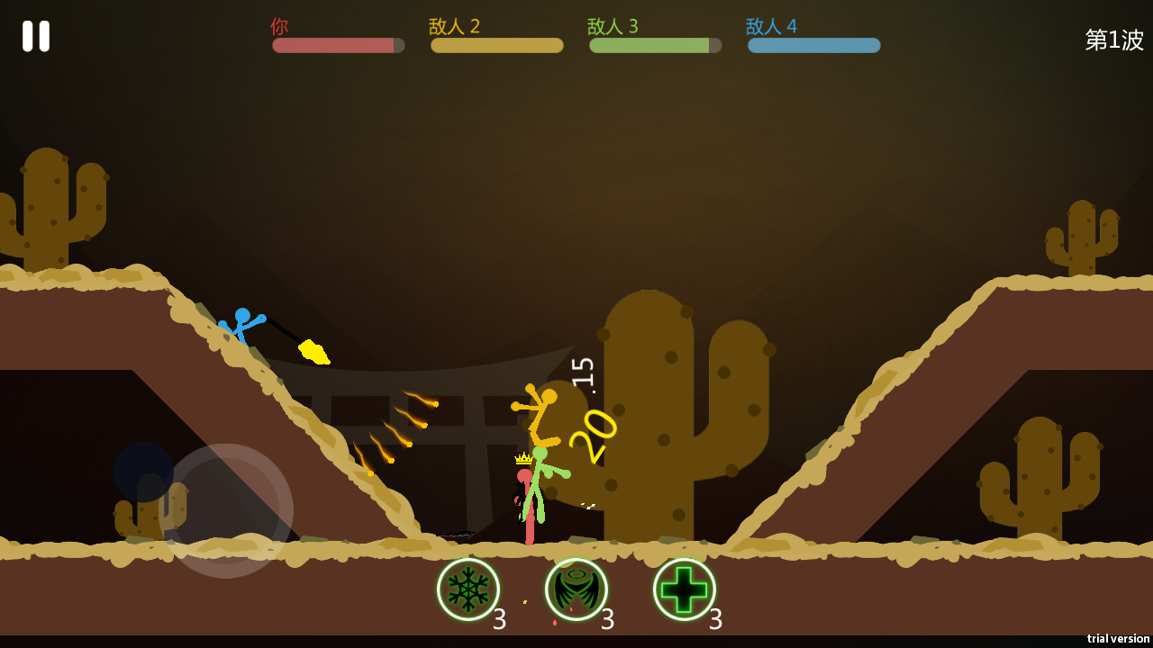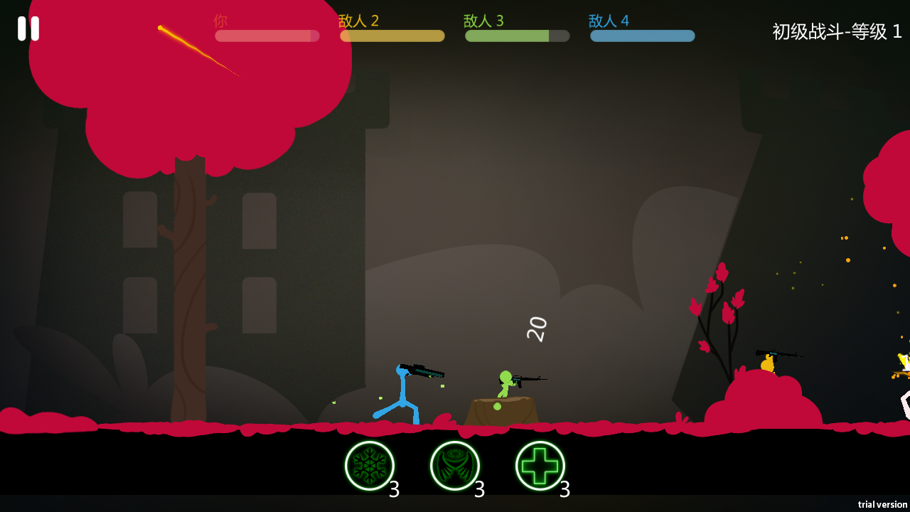 1、角色定位鲜明:火柴人角色分为突击型、辅助型等,突击型擅长快速近身,防御型能开启护盾抗伤,辅助型可释放治疗或减速技能,满足不同团队搭配需求。
