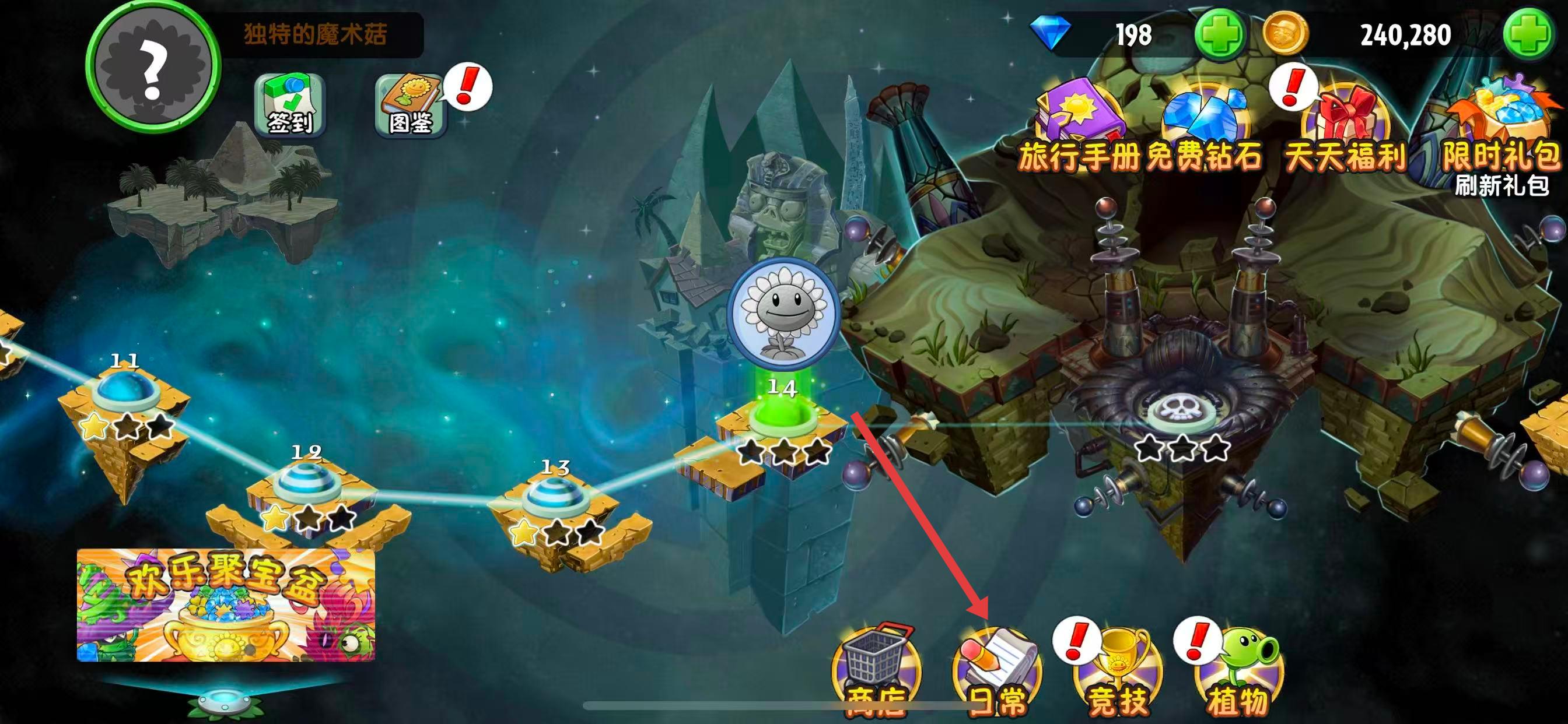 1、打开游戏后,点击游戏主界面下方的日常按钮。