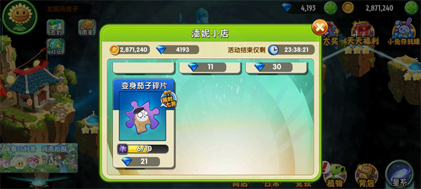 全新潘妮小店开业,金币也能获得给力植物,记得每天光顾!
