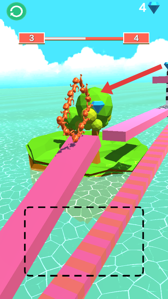 3、推进关卡,灵活调整人形链条的形态和移动速度,利用链条的柔韧性来跨越障碍,收集钻石并抵达终点。