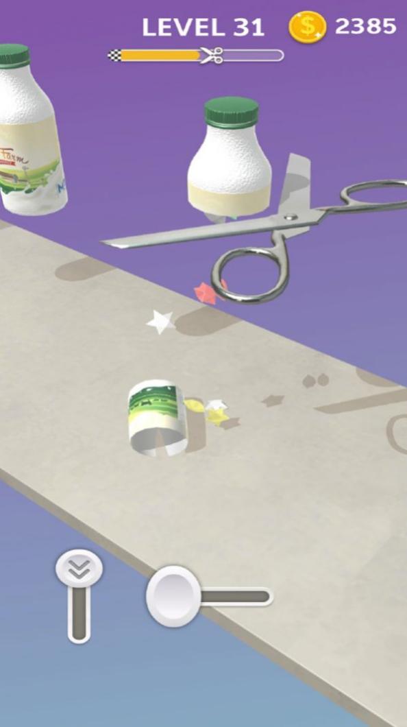 1、道具自由使用:用户在游玩中能够自在使用多种不同的道具开启剪割之路,借助道具的辅助,更轻松地应对各类切割任务,丰富游戏操作方式与策略选择。