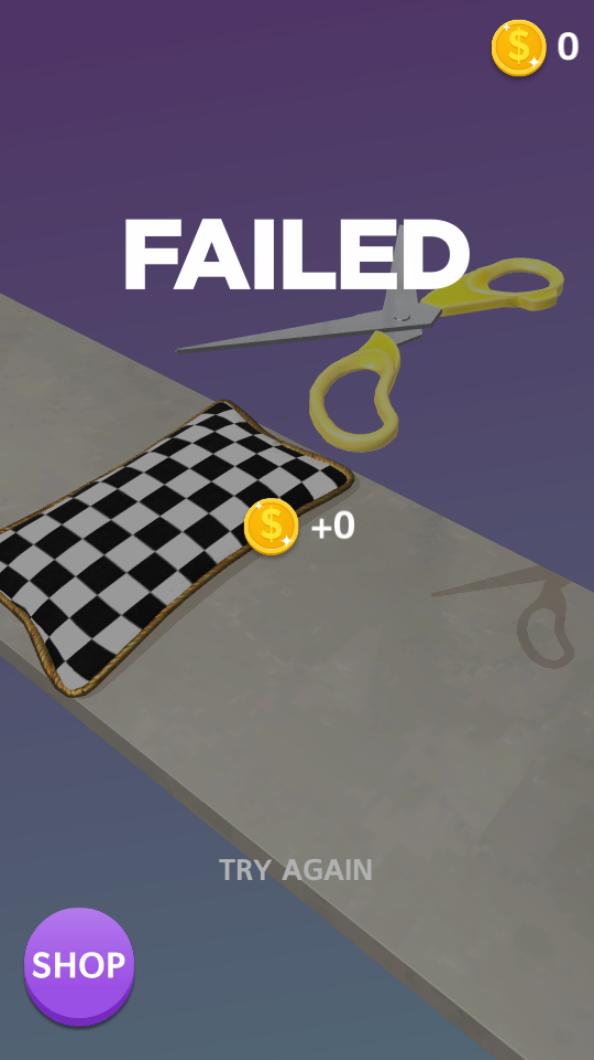 3、推进到新关卡,面对不同物品,调整剪刀切割的角度和时机,根据物品特性完成切割,顺利的通过关卡。