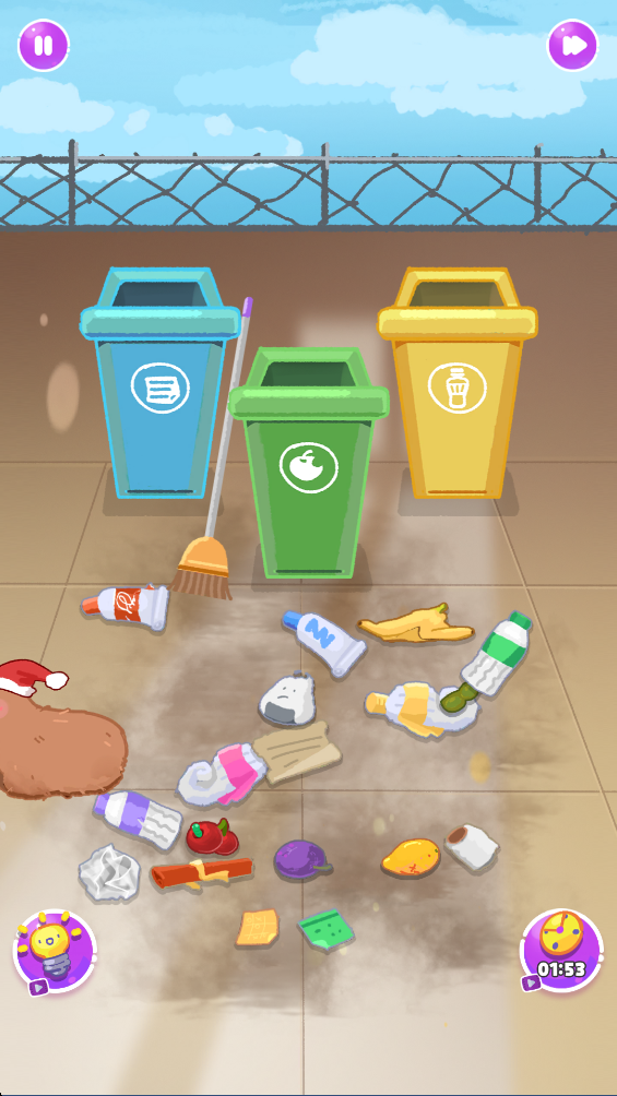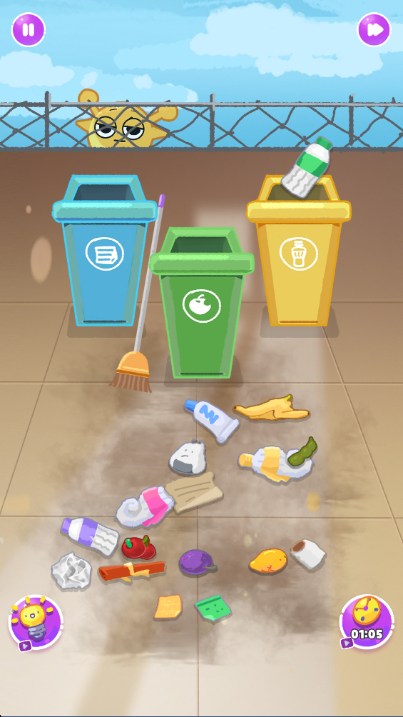 2.第一关就是收拾干净这里,首先把垃圾桶摆放好。