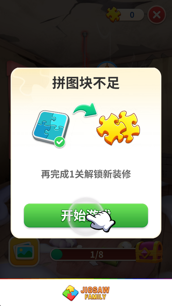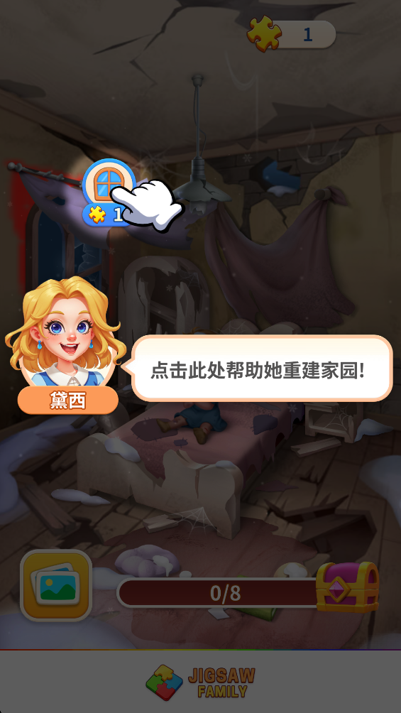 家庭拼图是一款结合了创意拼图与温情故事情节的益智类模拟游戏,你将通过拼接精美的拼图碎片,帮助一个破碎的家庭重建他们的家园。每一块拼图不仅仅是游戏中的一项任务,它们都是故事的一个关键元素,帮助你推动情节的发展。你需要依靠你的智慧和细心,将这些碎片拼合,逐步解锁新的资源,帮助家庭度过困境,恢复他们失去的温暖与希望。