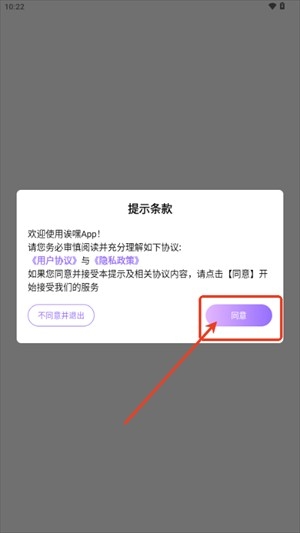 1、打开在本站下载安装好的诶嘿,点击同意相关的隐私政策