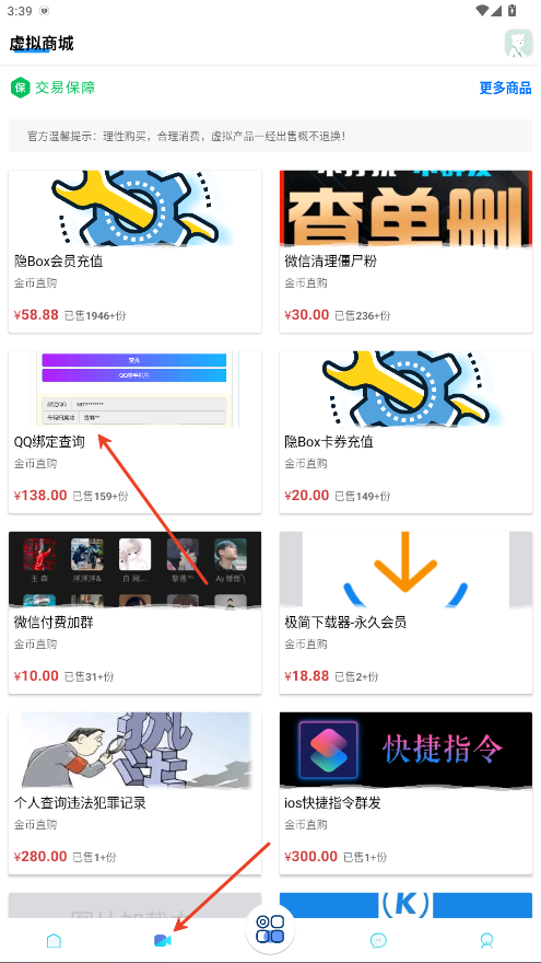 1.在底栏摄像头板块内点击QQ绑定查询