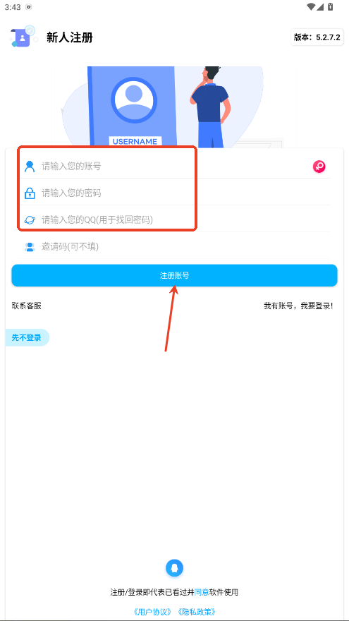 2.输入账号、密码以及QQ号点击注册即可。
