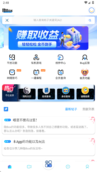 隐Box是一款轻量化多功能工具APP,内置二维码生成、在线时间显示、隐藏QQ搜索、QQ超长气泡等实用功能。软件体积小、运行流畅,功能丰富且易上手,满足日常多样化需求。用户可快速查找并使用各类小工具,体验高实用性与趣味性兼备的便捷服务,是手机必备的多功能工具箱。