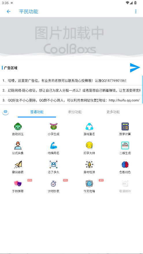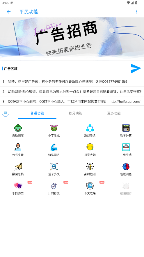 2.在首页,点击平民功能,您可以发现很多的实用功能