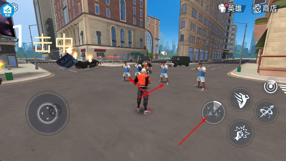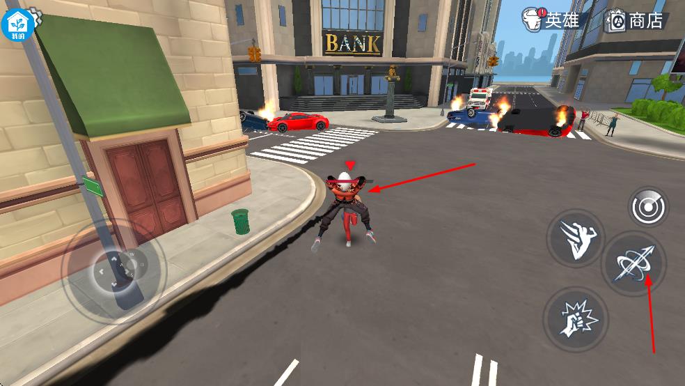 2、当接到团伙准备抢劫银行的提示时,前往银行区域,利用右侧技能按钮如飞镖类技能攻击敌人,阻止抢劫行为。