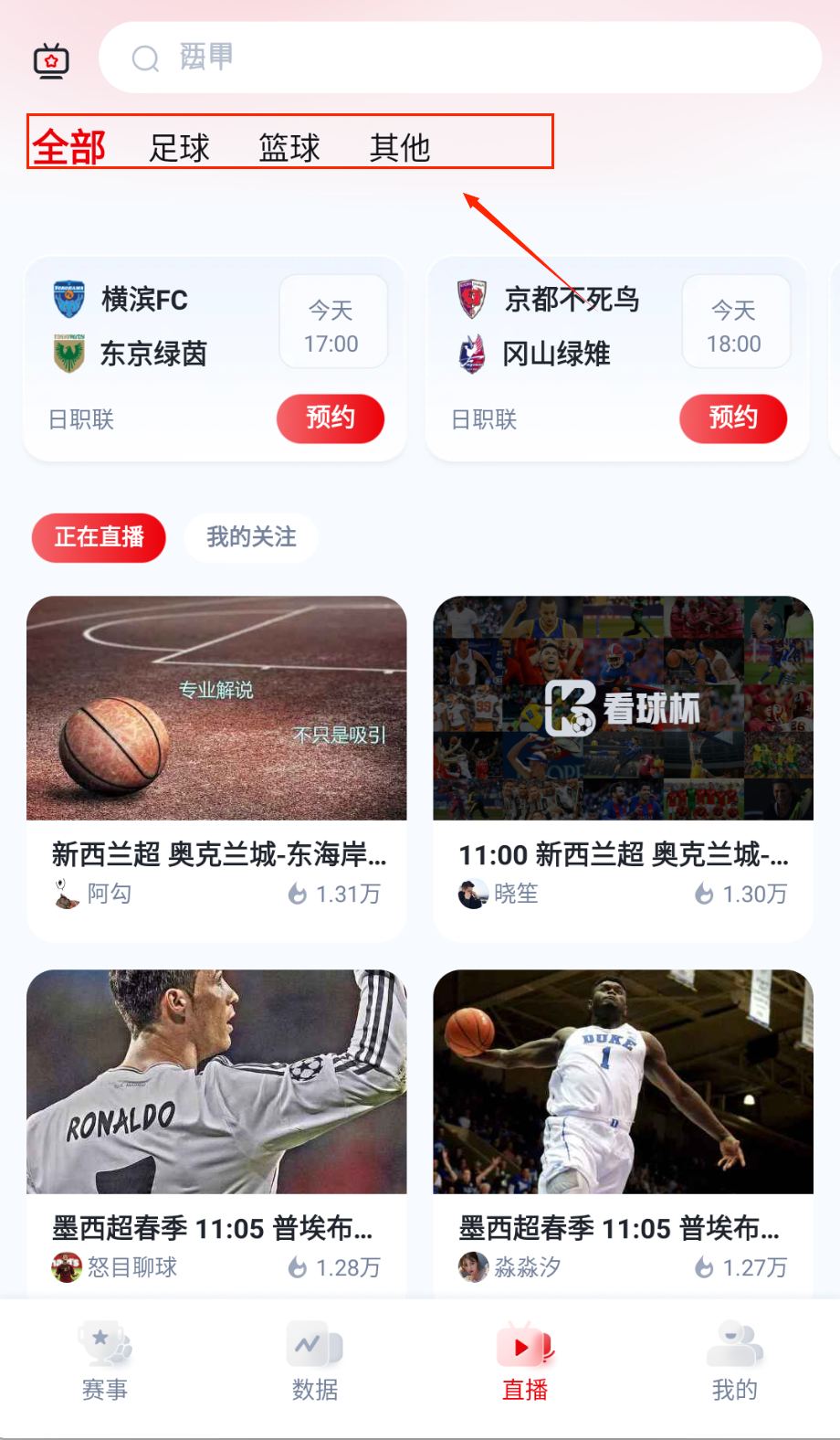 1、下载安装后首次打开应用,系统会展示足球、篮球、网球等主流运动项目选项,用户可选择感兴趣的项目进入对应赛事专区开始探索。