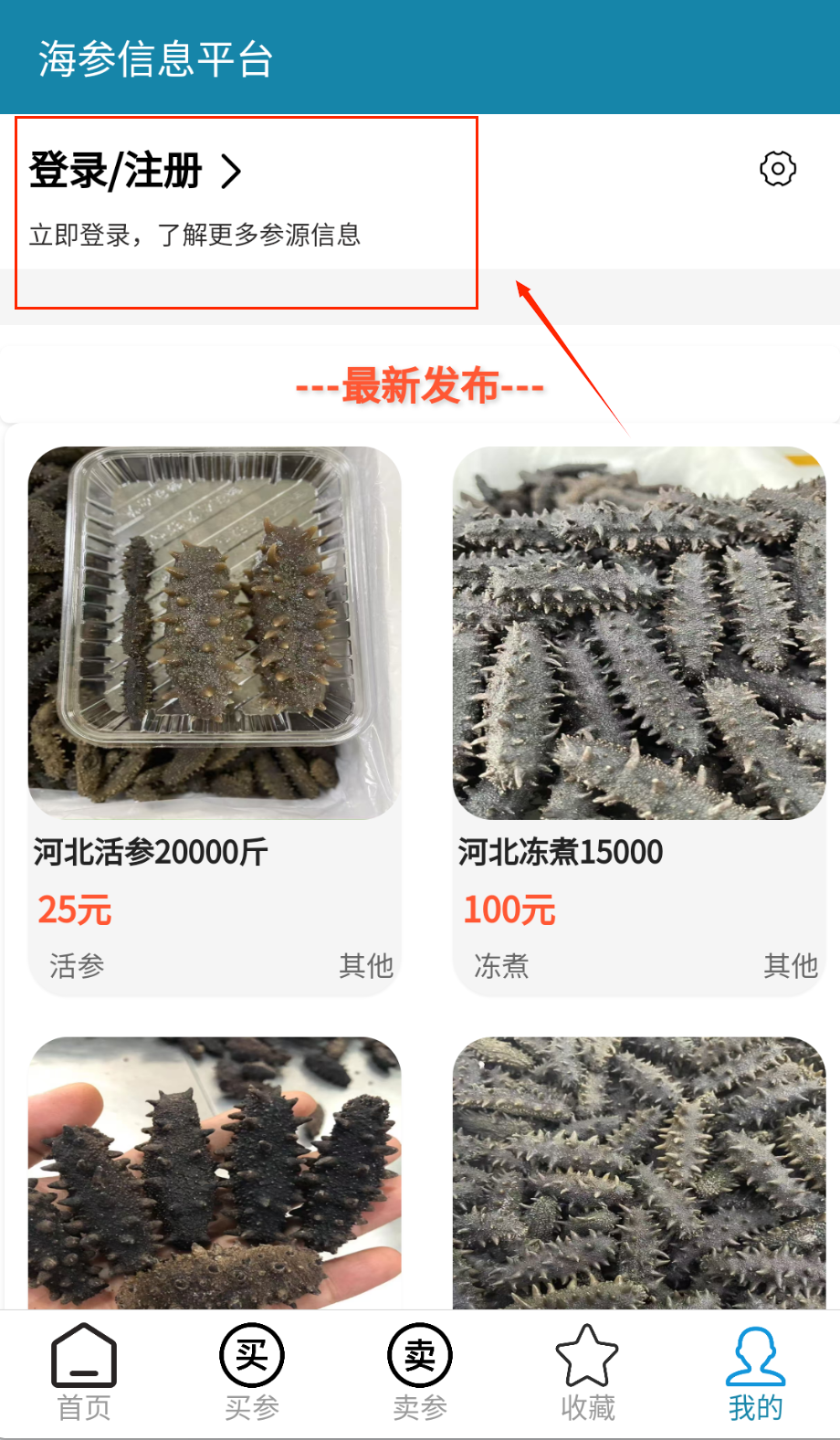 1、下载安装后首先完成手机号注册流程,在个人资料设置中选择感兴趣的海参品种如辽参、鲁参等和主要产区,系统会根据选择智能推送。