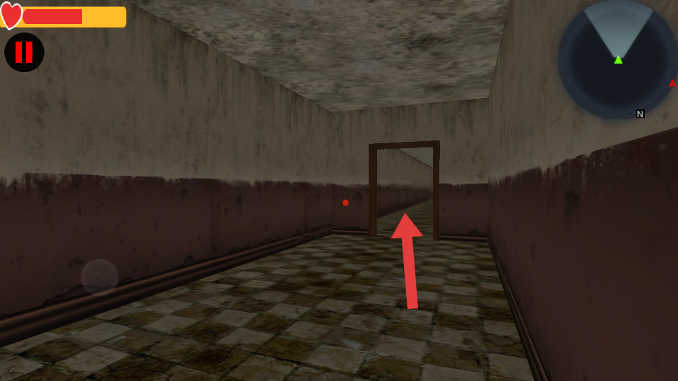 2、遇到走廊通道,朝着门框所在的通道口前进,探索新区域,途中可观察墙面、地面细节,寻找线索。