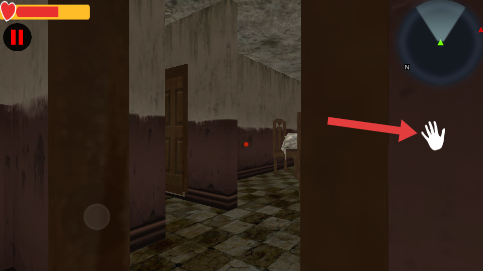 3、看到右侧手型交互提示时,靠近对应区域进行互动,可能开启新路径或获取道具,助力游戏推进。
