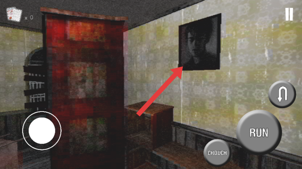 3、若需隐蔽或通过狭窄区域,点击按钮蹲下,同时仔细观察带有装饰画等区域,可能藏有关键内容。