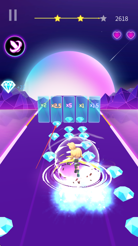 3、看到跑道上的钻石和倍数加成道具时在不影响击打音符方块和躲避障碍前提下尽量收集增加收益。