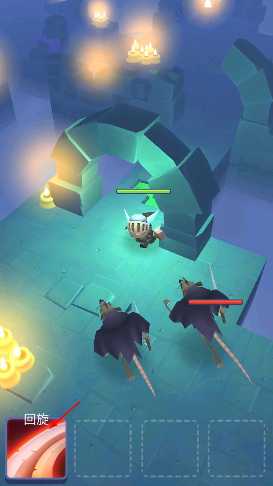 2、在遇到敌人时,观察敌人位置和自身技能,点击左下角“回旋”技能按钮,使角色释放回旋技能,对周围敌人造成伤害,同时注意躲避敌人的攻击,保证自身安全。